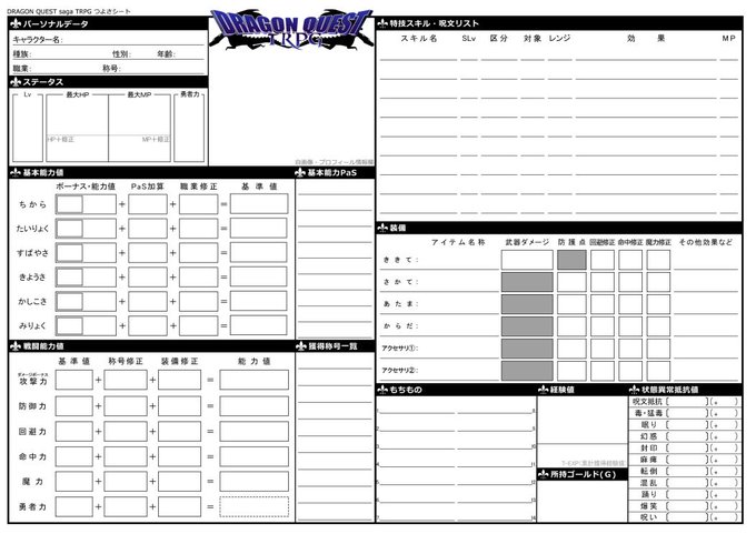 浜松trpg女史会 ブランクシート
