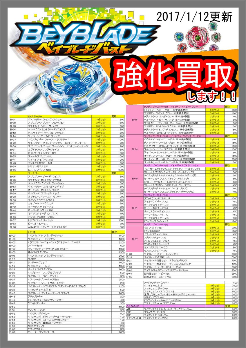 キッズウォーカー柴田店 ランブーもでるよ ベイブレードバースト新商品 ランダムブースターvol 1 19日発売 あたりはトライデント ヘビー クロー レイヤー ディスク ドライバーすべてレアアイテム Http T Co Cdeok2vqyk